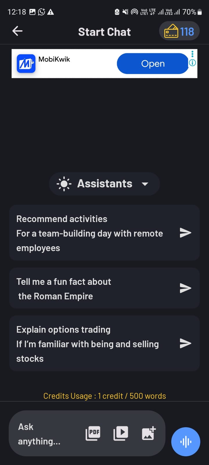 Unlimited Chat – Interact with the AI without any word limits for uninterrupted learning and communication.