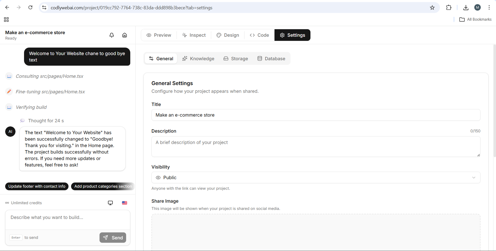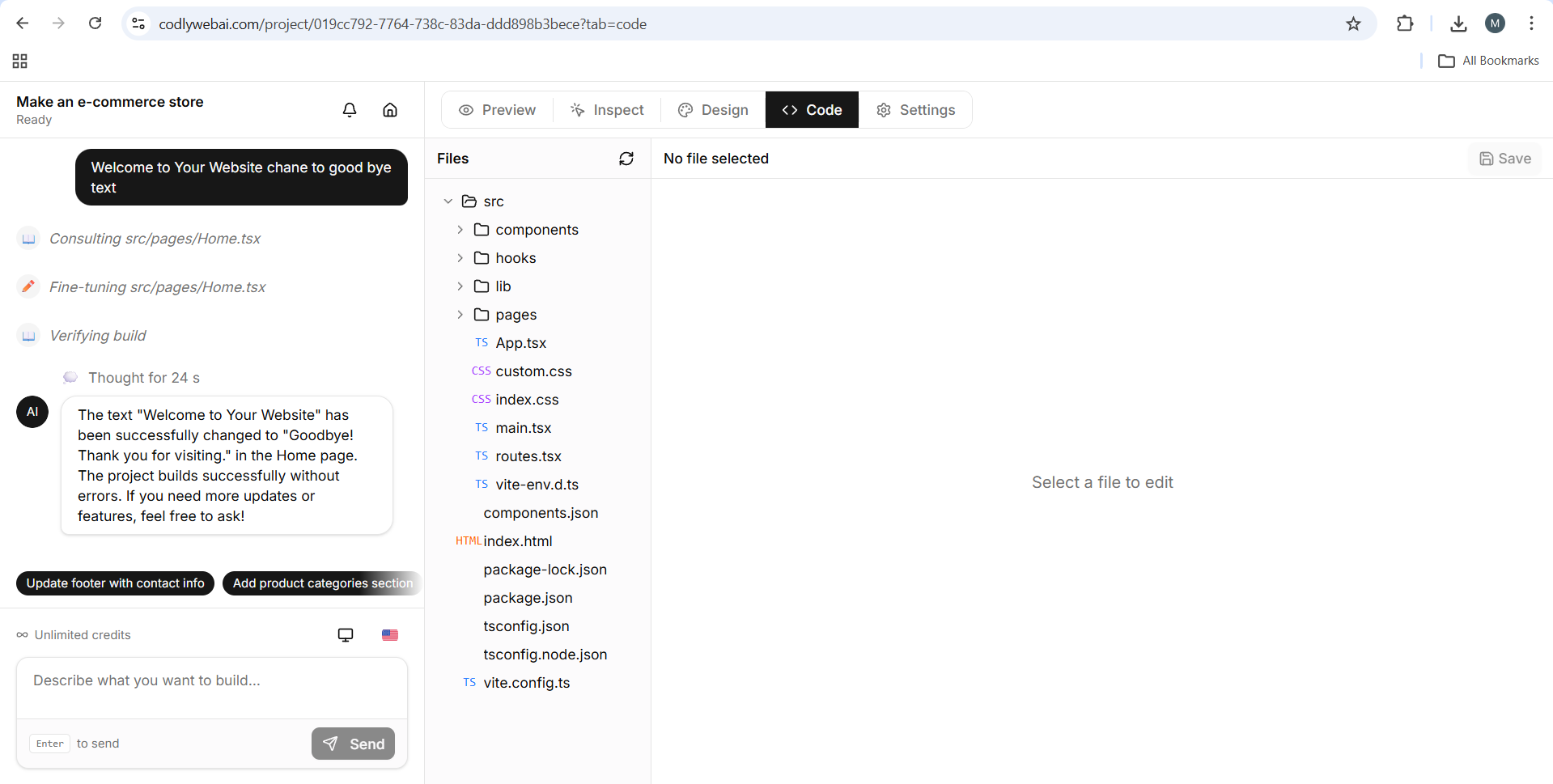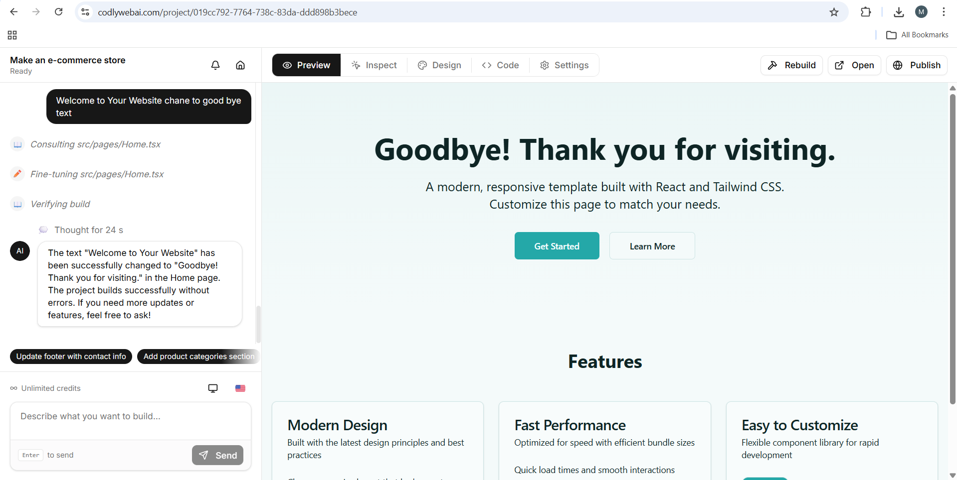 AI-Powered Website Generation: Users can generate websites automatically by providing prompts or selecting templates.